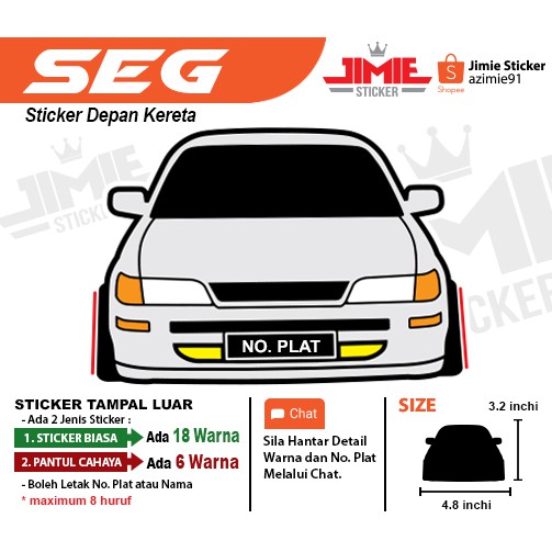 Sticker Kereta Toyota Seg 1pcs Depan Boleh Tukar Warna Dan No Plat Shopee Malaysia
